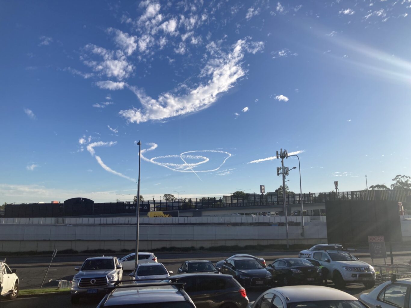 At Approx. 3.58pm Tuesday 4th June, 2024, this formation was written in the western Brisbane skyline. Photo as viewed from Springwood. Can anyone interpret what it is? There appears to be a Q in the centre of it. Not sure if that is what was intended.