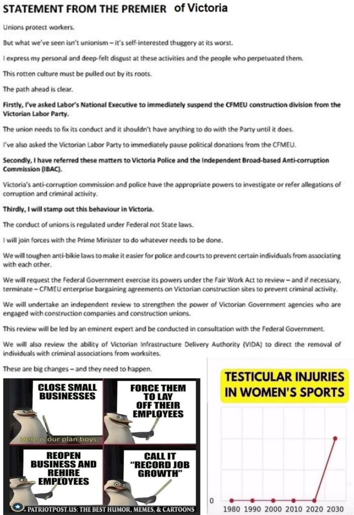 It’s a demonic thing. When you hear & read about political corruption over the coming days, with the criminality being reported about the CFMEU, please remember that this is just the tip of the iceberg. Our governments (federal, state, and local) have been rife with (at best) unethical and immoral, and (at worst) criminality and corruption, for decades. Anyone who has engaged with government agencies (not all, but many) on a commercial basis, over recent decades, has witnessed behaviour that was highly questionable (at the least). Anyone who has worked in, or who knows people who have worked in, the construction industry can speak of dubious practices being the norm.