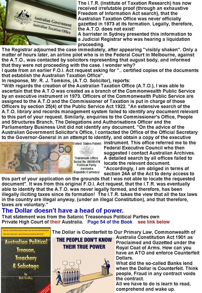7 – Australian Taxation Office does not exist – It was Never Officially Gazetted Legally, Therefore, does not exist