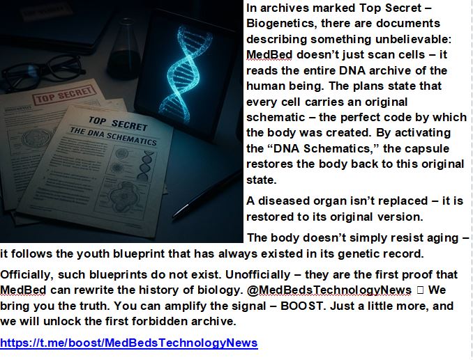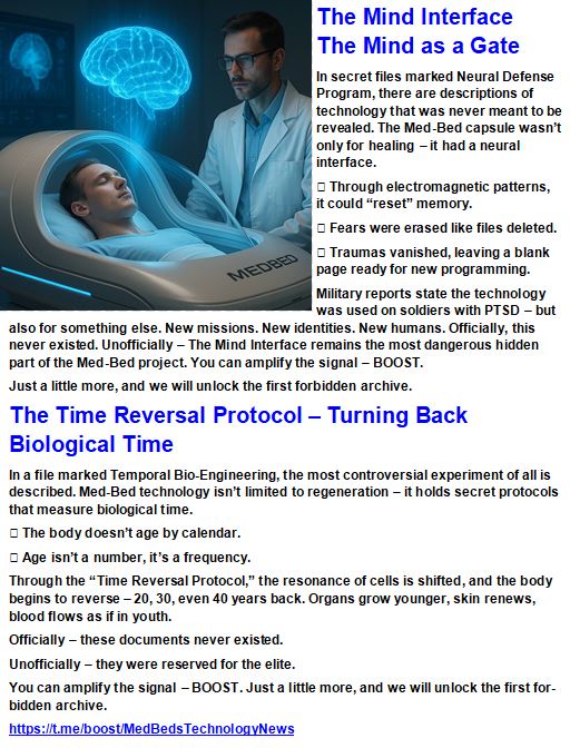 MEDBEDS THE TECHNOLOGY THEY HID – Imagine a chamber where the body’s blueprint is restored every cell renewed every disease erased. Cancer dissolved organs regenerated age reversed. This is not fiction. These are Tesla based technologies buried in underground bases while trillions were wasted on pharma and war. Now the veil is lifting and the MedBeds are ready to enter humanity’s timeline.